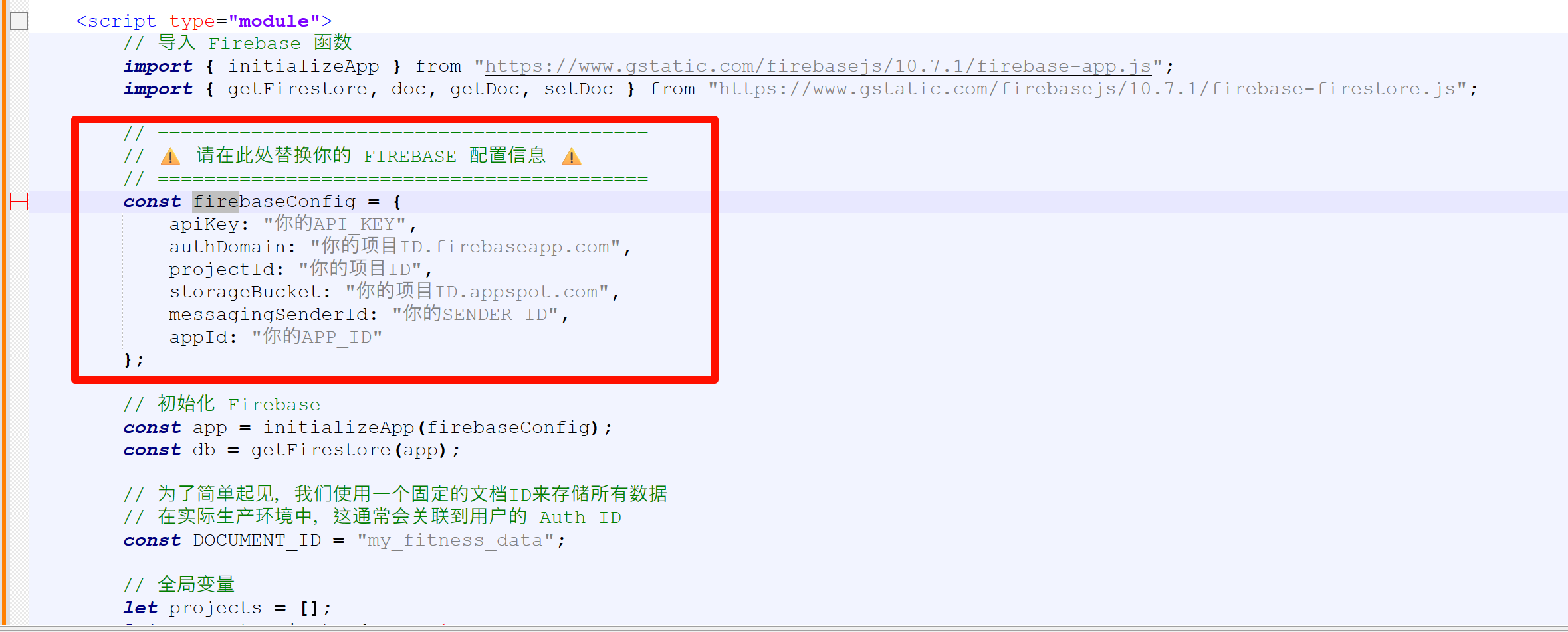 生成后的代码,用最开始firebase的代码替换