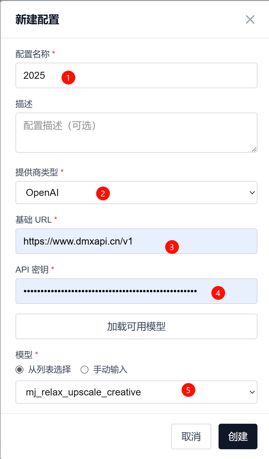 新建配置 - 然后参考下面设置,模型选择自己喜欢的